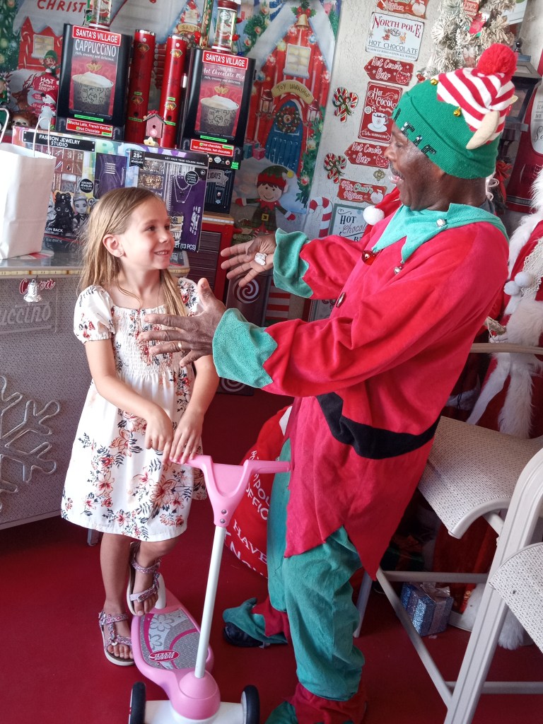 The holiday outreach program allows us to gift children with toys like Kris Kringle said all I want to do is give away some TOYS ! We ask that guardians please bring your children to the Northpoledisplay where they can enjoy some hot cocoa, cookies, candy and coloring books in the mean time we can discreetly find out what type of toys they like and fill out a simple form for each eligible child. Santas workshop only has toys no electronics or electric scooters if your children have these type of items on their Christmas wish please reach out to other programs that are also assisting with providing gifts, all children should have a chance to get something special for Christmas. We are beyond ecstatic to be able to provide for the younger kids who want dolls, trucks, cars and squishmallows among other items. Their wish list should have a few toys they like to give us a chance check to see if we have any of the items in Santas Workshop. The joy of finding at least one thing you asked for under the tree is truly how the magic of Santa Claus is instilled as we aim to elicit the joy every child has when Santa delivers something they really wanted, our team always tries to go above and beyond and will always do our very best working with the assets we have available when we go to Santas Workshop.